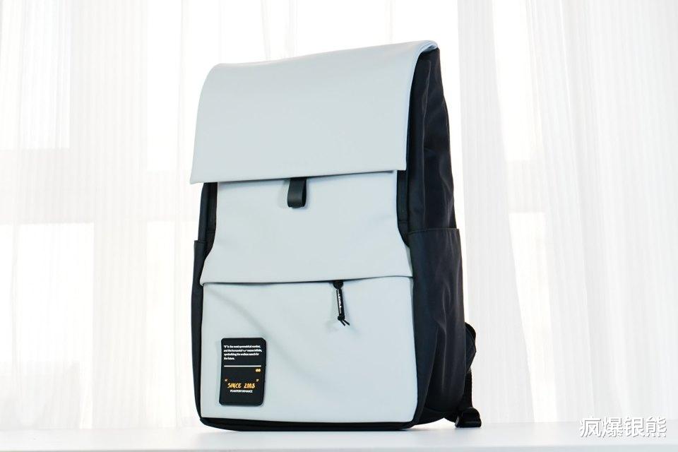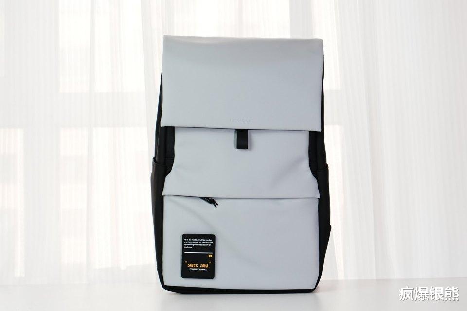 地平线8号MOMENT这款双肩包整体设计如上图,材质是织物+PU,不仅结实耐用而且时尚大气。包包有标准款和mini款两种尺寸,我这里入手的是标准款,净重1.32kg,容量20L。配色我这款是晨云灰,黑灰配色立体感很强,环保素皮面料不仅好看而且支持4-5级的防水防油。