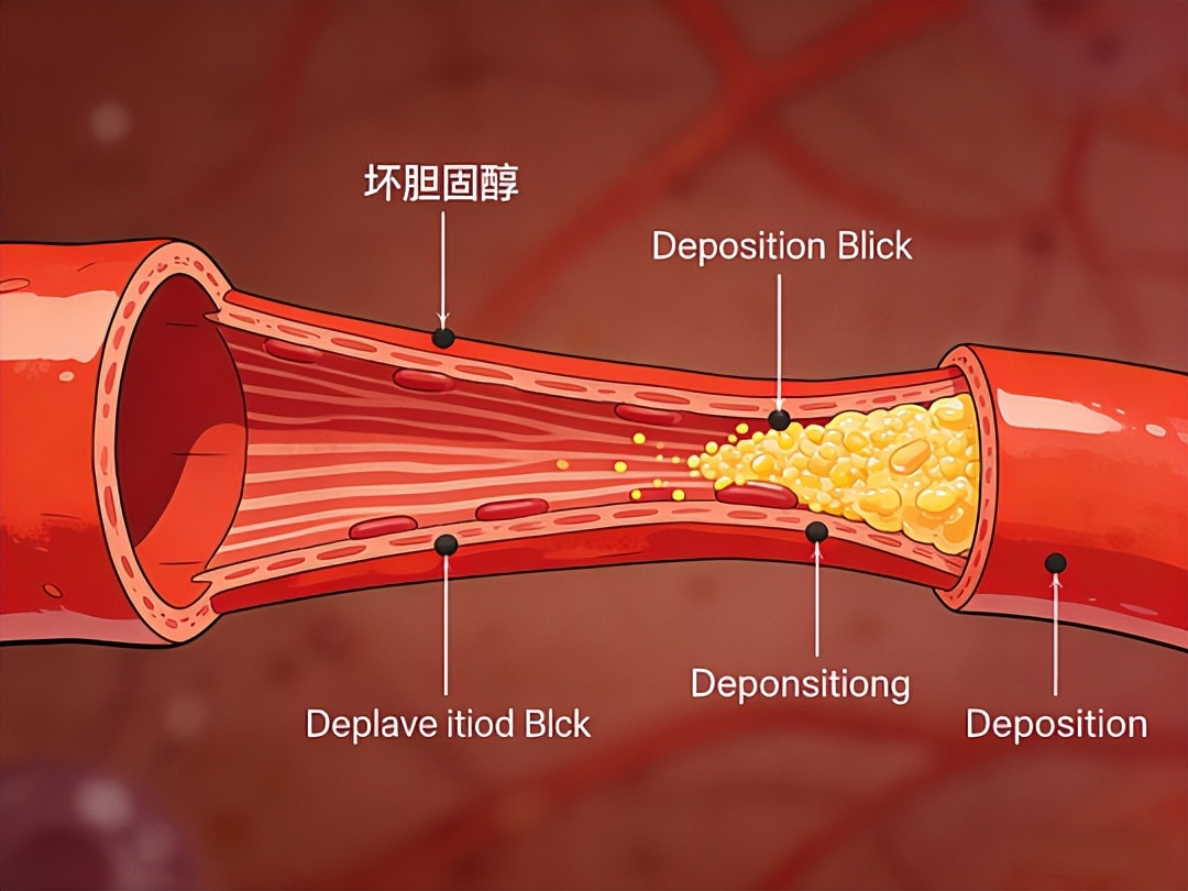 问题在于,当血糖高、血压高、炎症因子活跃时,这条“路”表面破损,胆固醇就会卡在裂缝里,慢慢变成斑块。