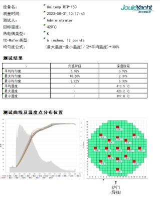 工艺调试阶段:当CVD工艺出现片内膜厚不均时,工程师无需盲目调整气流或功率,而是首先通过TC-Wafer排除温场因素。数据显示若温差确实超标,则可针对性地优化加热灯管功率分区或冷却水路流量。