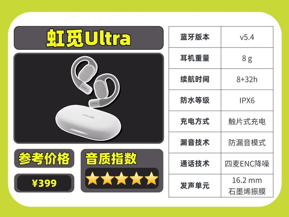 音质配置:16.2 mm石墨烯振膜+虹觅声学调音+H-Zone空间音效