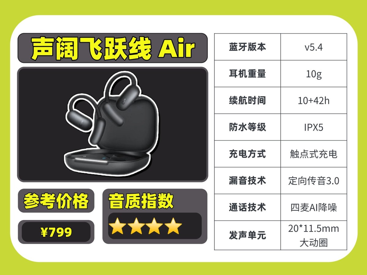 音质配置:18×11毫米定制动圈单元+定制赛道驱动单元+开放式定向音场技术耳机亮点:这款耳机音质很好而且佩戴起来也非常舒适