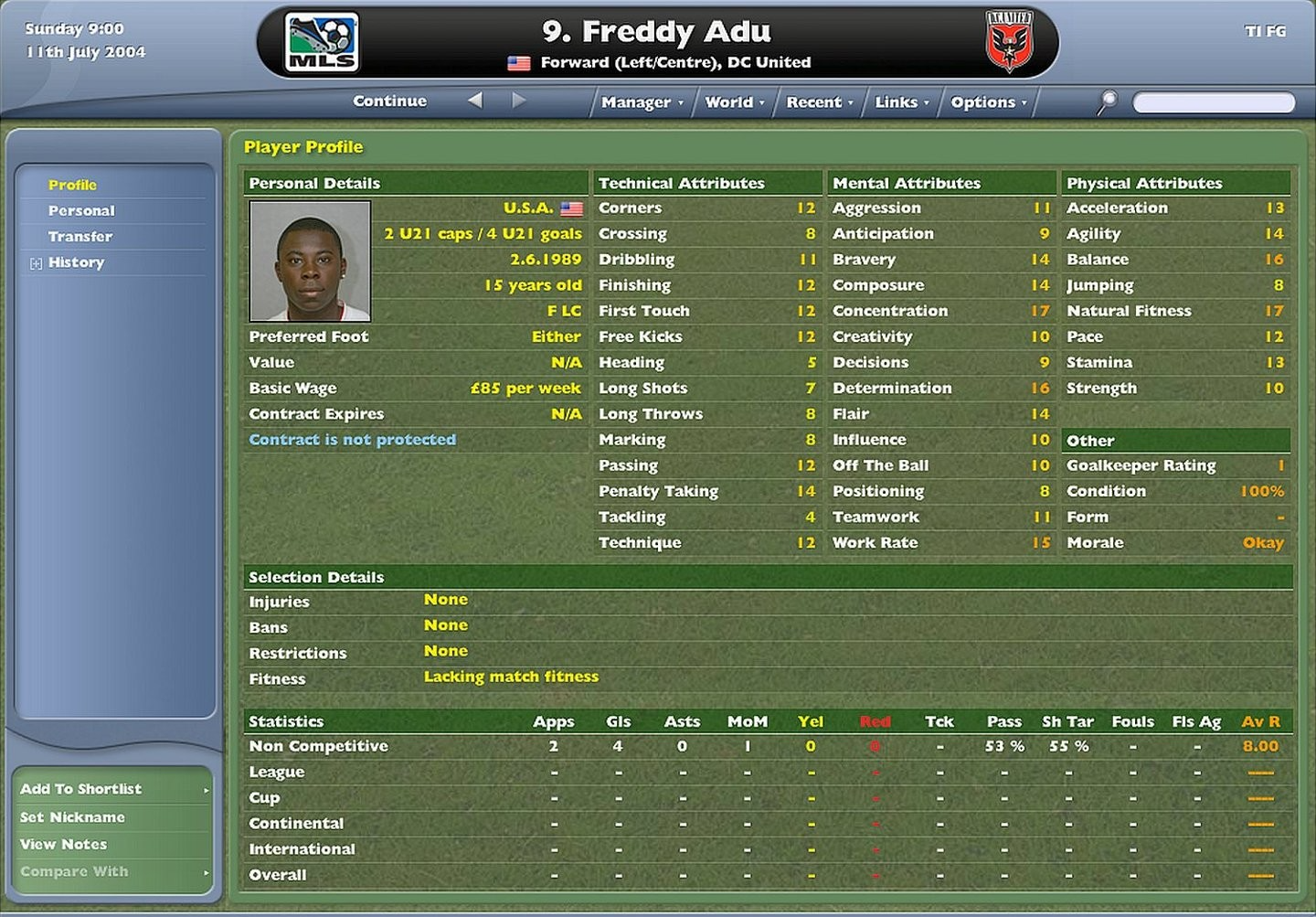 本该光芒万丈的人生,终究成了遗憾。2004年,14岁的阿杜被华盛顿特区联足球俱乐部选中,成为美国职业大联盟(MLS)选秀大会的状元,就此改写历史,他成了美国团体项目史上最年轻的职业运动员。