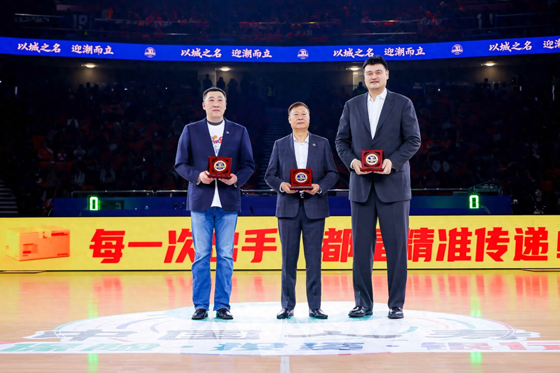 在备受瞩目的致敬环节,俱乐部为李秋平、姚明、刘炜、章文琪四位上海篮球功勋人物精心准备了功勋纪念章。这枚纪念章,是对那段峥嵘岁月最崇高的致敬。当他们并肩而立,仿佛时光在这一刻交汇,上海篮球的荣耀与传承尽收眼底。