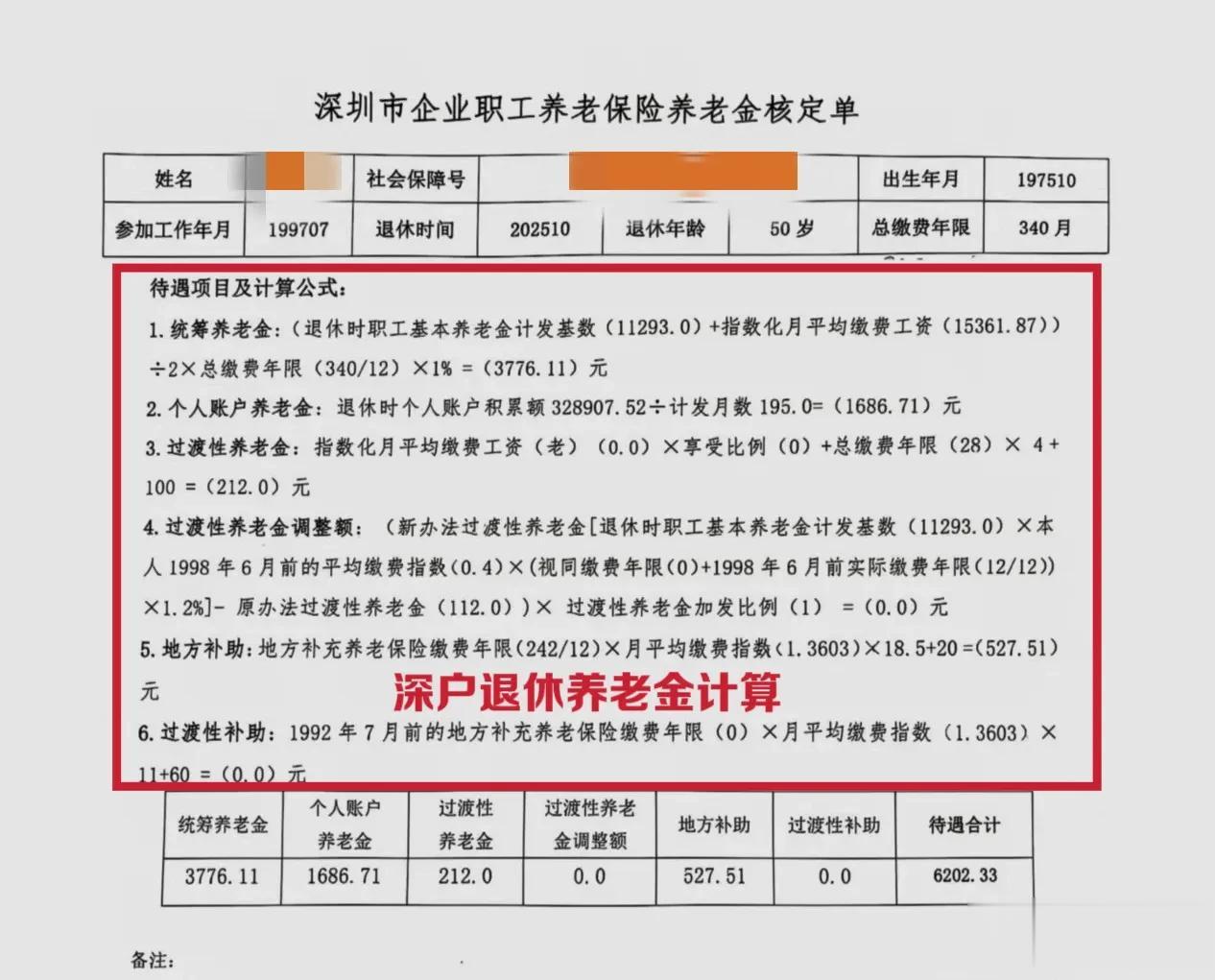 同时,通过这份案例,我们也一起看一下,在同等缴纳社保的情况下,深户非深户领的养老金差别能有多少?