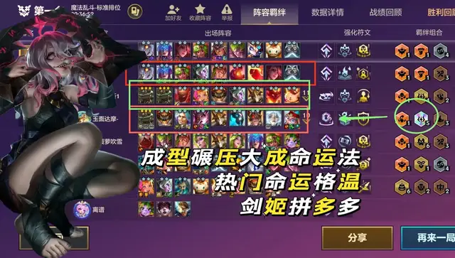 不得不说开发时间暂停贝蕾亚这套阵容的伙伴真是个天才,把羁绊和单卡质量搭配拉满,完美适配,在命运配狗的大版本环境下,突出重围登顶T0。
