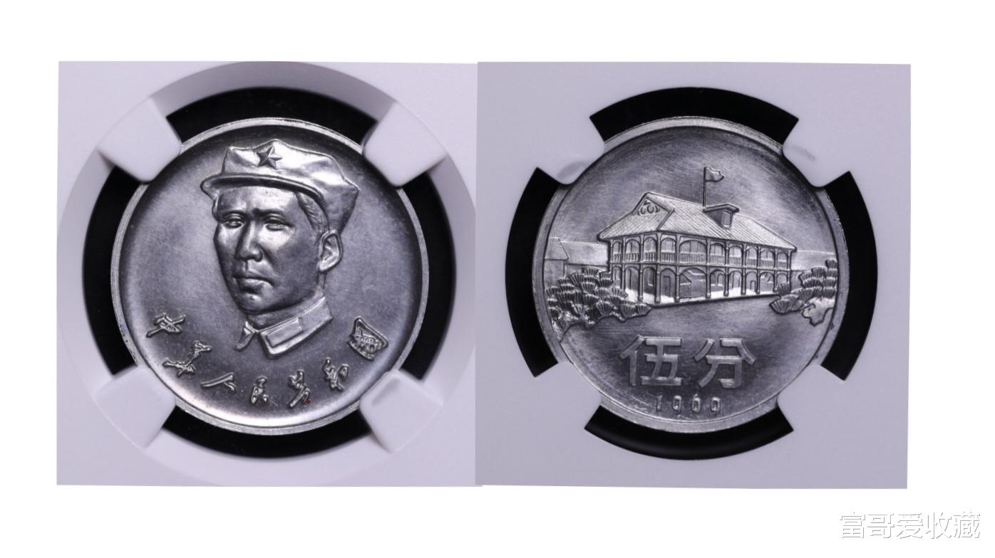 这枚1969年的“5分试铸币”,背面描绘的是“遵义会议”图案,由于它是“试铸币”,所以发行数量较少。