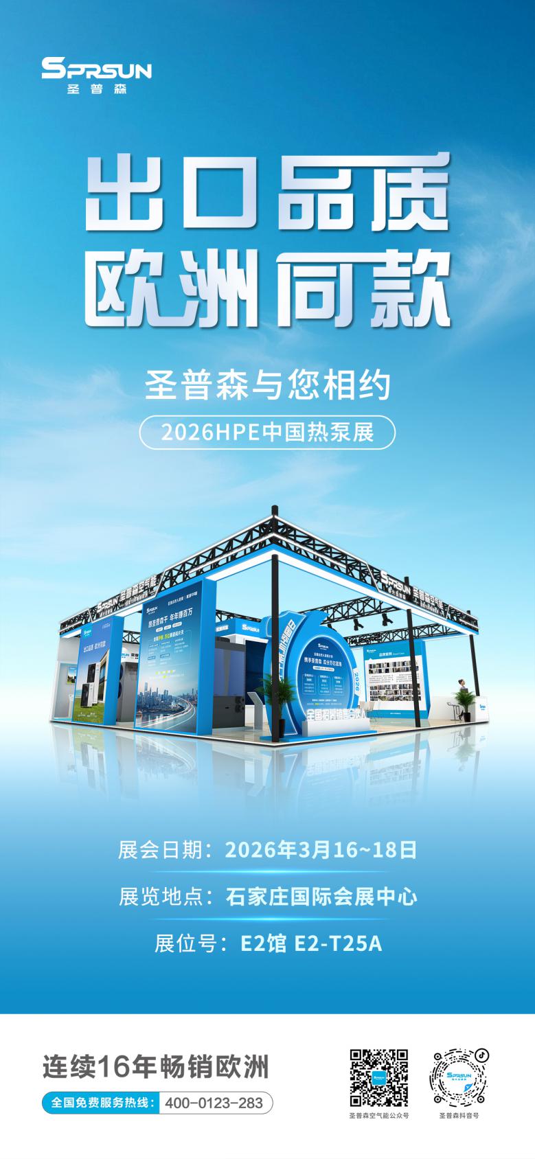 欧盟精工品质,实力护航前行!2026年3月16至18日,圣普森诚邀您共赴石家庄热泵展。