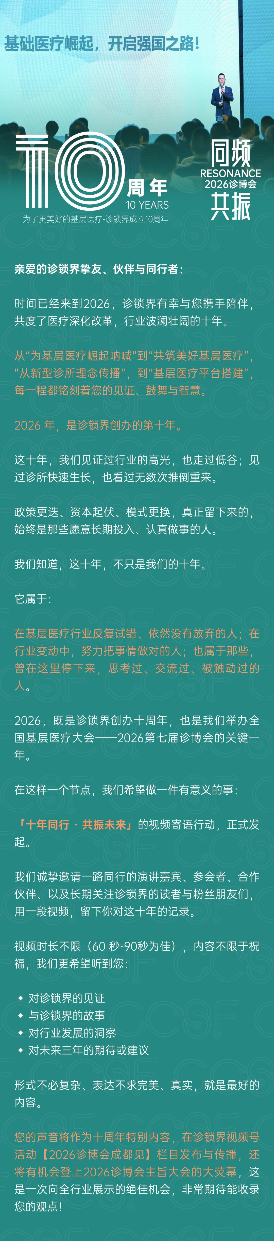 十年同行·共振未来——诊锁界10周年视频寄语活动