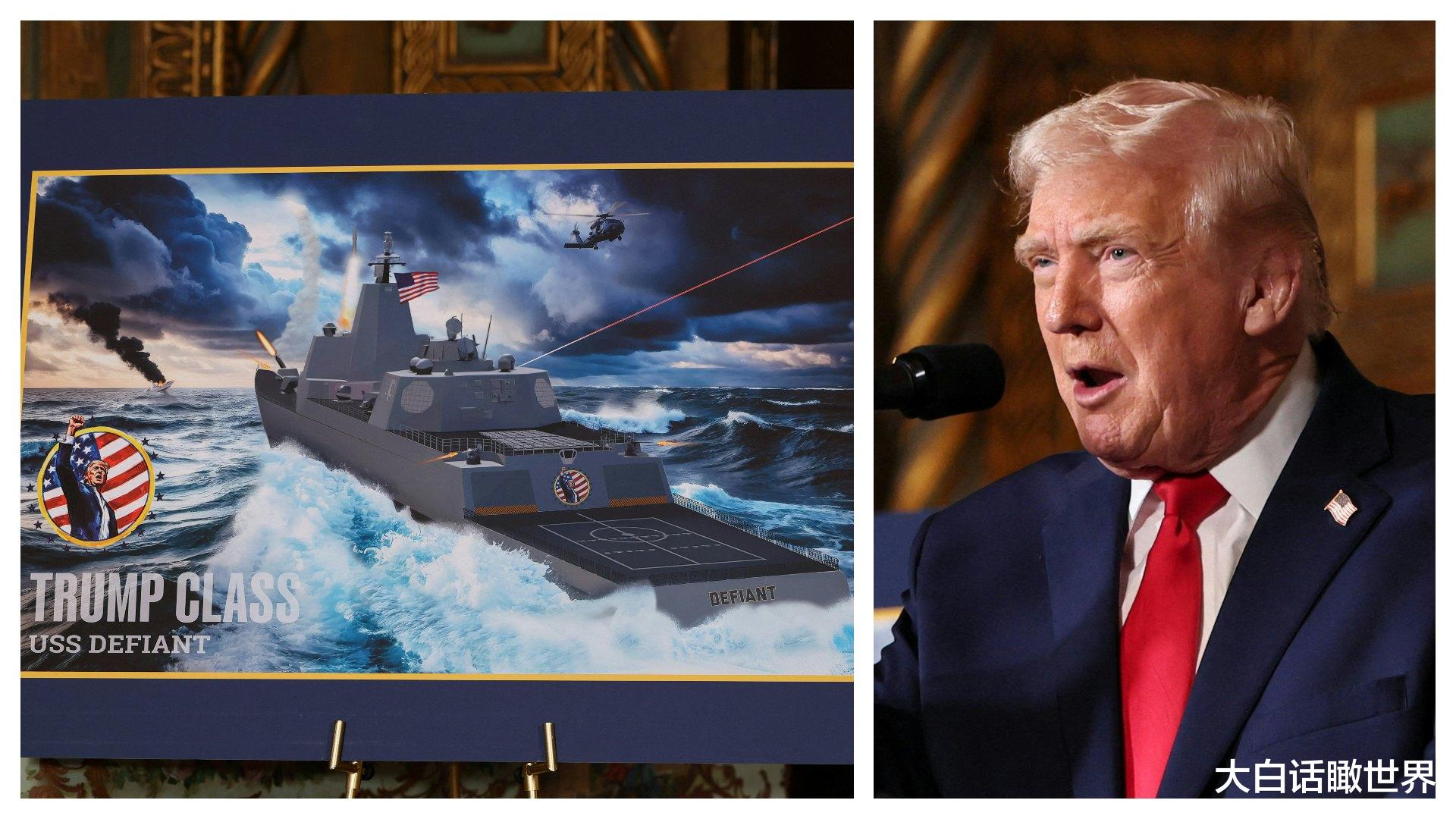 所以明年3月访美期间,无论特朗普提出多么过分的要求,高市大概率都会全盘接受,以此换取美国在中日问题上对日本的支持。不过,是否答应高市的请求,特朗普也有自己的考量。12月22日,特朗普在海湖庄园宣布了“黄金舰队”计划,准备研制一种3万至4万吨级的新型战列舰,命名为“特朗普级”。据特朗普吹嘘,这种战列舰比美军现役的驱逐舰更大、更快、“威力强100倍”,而且具备AI能力,能发射高超音速导弹、核巡航导弹,还配备有电磁轨道炮和高功率激光,简直神乎其神。然而,在一番吹嘘后,特朗普却话锋一转,称这款军舰将威慑所有人,但并非针对中国,“我们和中国相处得很好!”