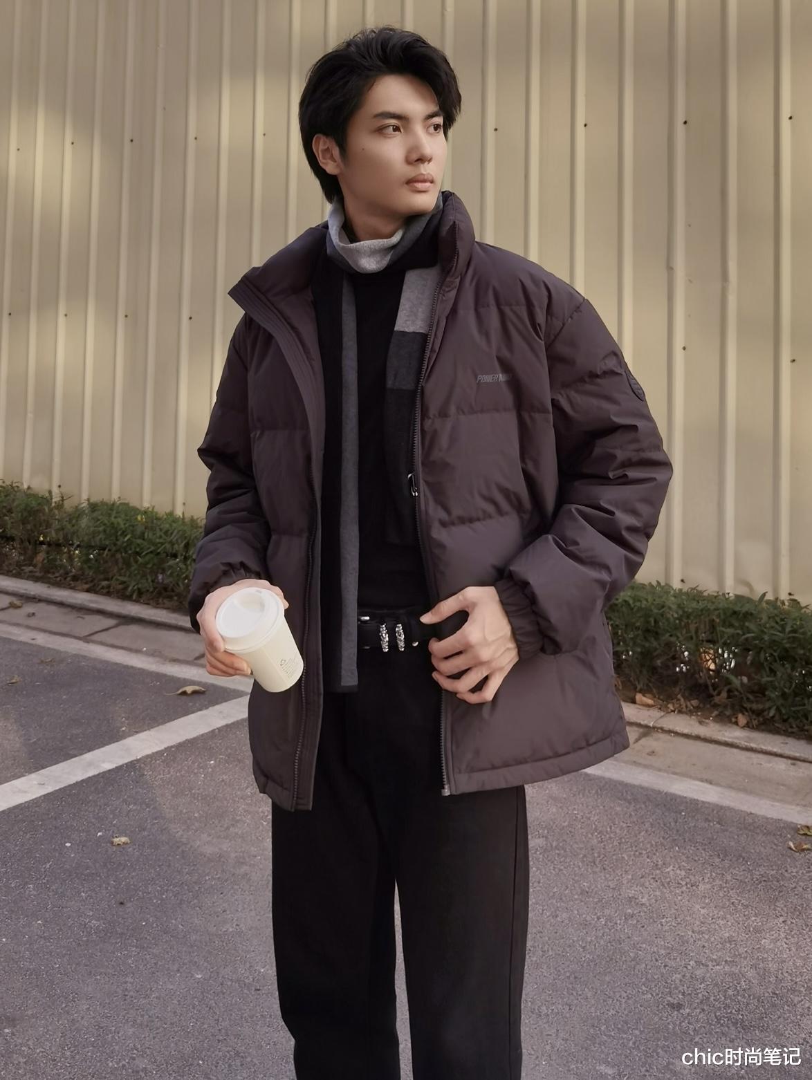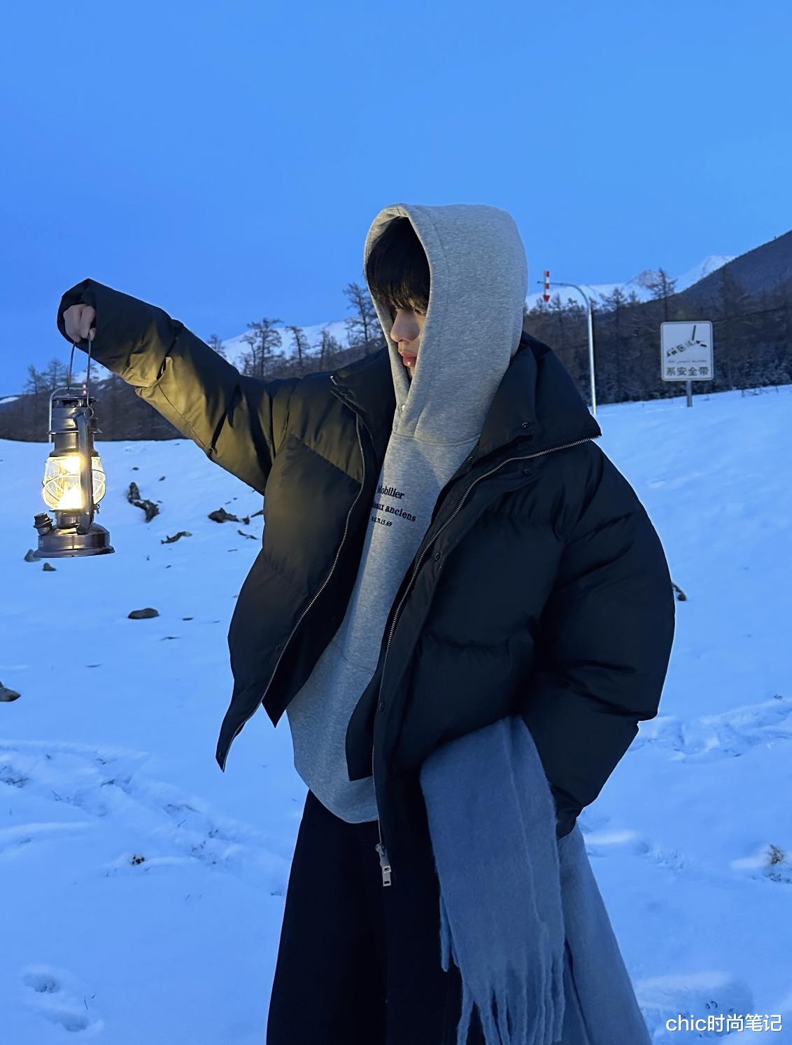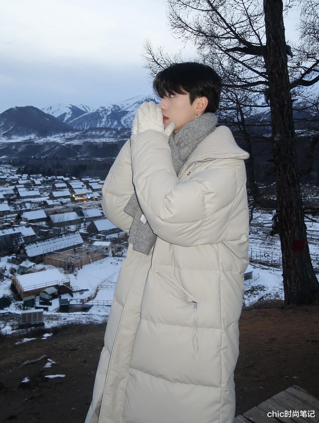 长款羽绒外套的好处就是保暖,颜色可以选择浅色系的,看着不会过于沉闷与臃肿,搭配上浅色系围巾或者帽子,清冷但又有烟火气的男神穿搭来了。