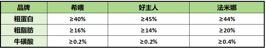 法米娜这款猫粮的营养价值相当不错,蛋白质≥44%,脂肪≥20%,牛磺酸≥0.4%,营养供给非常充足,可以满足不同年龄猫咪的基础营养需求。