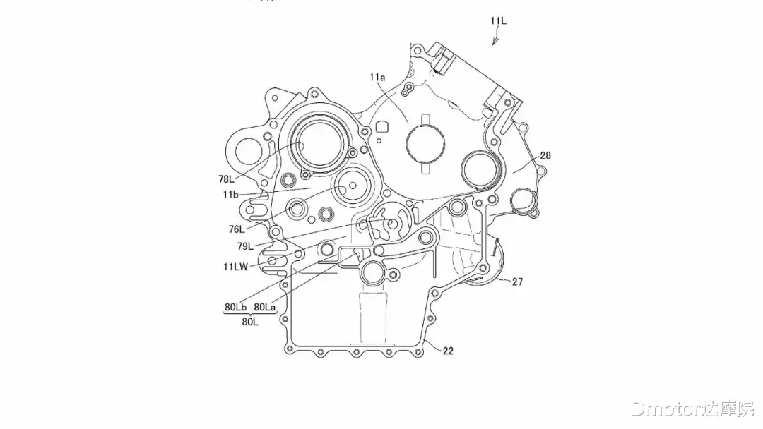 专利图显示,新V4的曲轴箱及变速箱外壳更为集中紧凑,相比过去 VFR1200 那种“大块头”构造,体积与重量都有望降低。