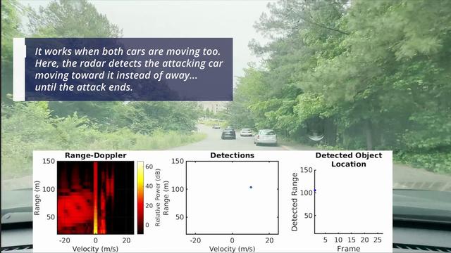即使目标汽车和周围的汽车都在移动,MadRadar 也可以干扰车辆的雷达传感器。 雷达传感器将错误地检测周围的车辆,直到攻击结束。