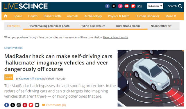https://www.livescience.com/technology/electric-vehicles/madradar-hack-can-make-self-driving-cars-hallucinate-imaginary-vehicles-and-veer-dangerously-off-course