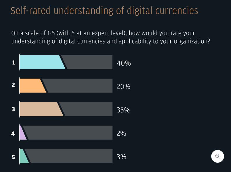 亚太地区的大多数首席财务官和财务主管认为自己对数字货币的了解程度较低,其中 40% 的人选择了最低评级。