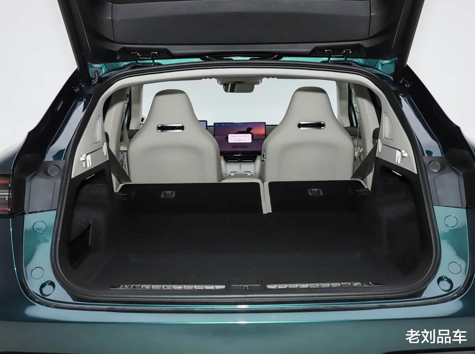 车尾配备贯穿式尾灯和小鸭尾,后备箱常规容积增程版796升(纯电版837升),对比小鹏G9 754升的常规容积,空间表现处于同一水平。但是放倒后排后,智界R7能扩展到2089升(纯电版2130升),小鹏G9则只有1795升。