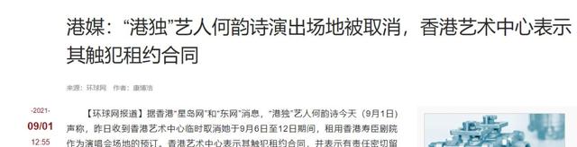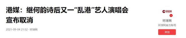 环球网:(港媒:继何韵诗后又一“乱港”艺人演唱会宣布取消2021.09.04)