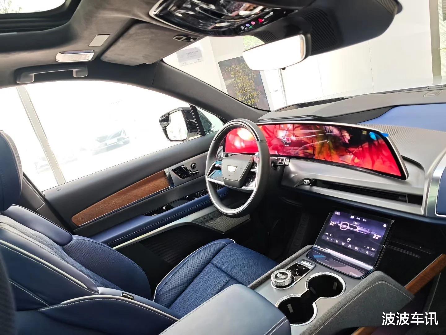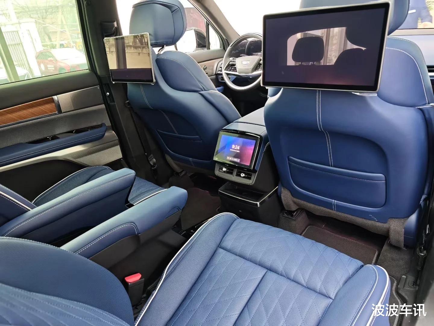 在内饰方面,凯迪拉克凯威德采用的是科技且豪华的布局,它有连体悬浮式的大屏,整体很有科技感,而且达到了33英寸。新车还有家族化的方向盘,它的内饰有大量的软质包裹,高级感很强。同时,从车内也能够感受到它的尺寸确实非常的宽大。凯威德采用的是2+2+2的座椅布局,每一个座椅的空间不仅好,而且豪华感强,舒适度也高,适合长时间的乘坐。在动力方面,凯威德的前电机最大输出功率为255千瓦,双电机版前电机功率183千瓦,后电机功率260千瓦。它采用的是102度电池,EPA工况续航里程为491km。