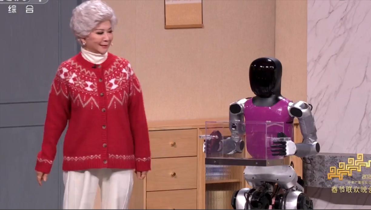 在知名演员蔡明参与的小品《奶奶的最爱》中,人形机器人进行了春晚首次魔术秀——双手抱着透明箱子一秒“马上有钱”。