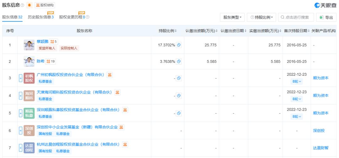 目前,因时机器人最大股东和实控人为公司创始人&CEO蔡颖鹏,其直接持有公司17.3702%股权。