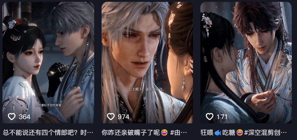 如今仍有AI翻唱的受众,主动请求过往音频存档;也有玩家通过给AI输入人设指令,寻求与男主展开更多互动;另外《恋与深空》男主们的Q版AI短片,也较受玩家欢迎。