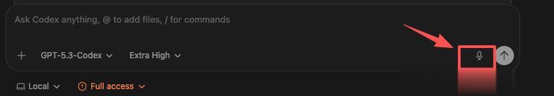 Codex右下角有个麦克风,我现在经常就是打开麦克风,然后用嘴说。
