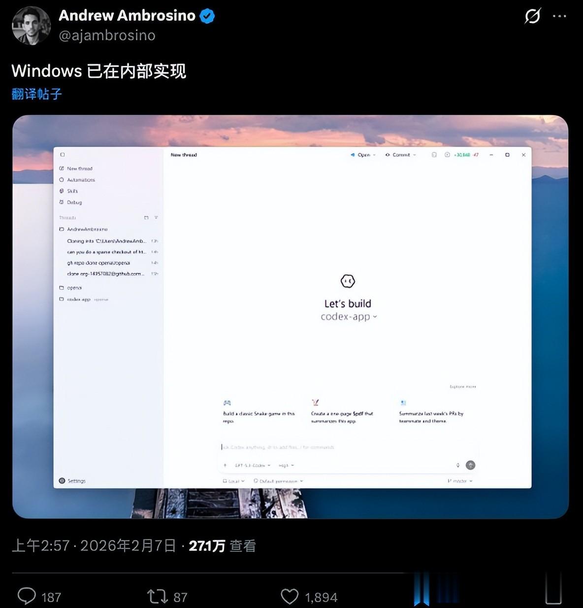 而且,最关键的是,Codex他有应用啊!!!他有可视化的图形界面啊!!!