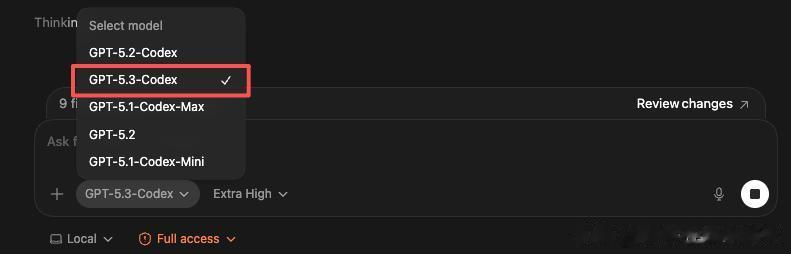 如果你是免费会员或者8美刀的Go会员,Codex可以下载也可以使用,但是是没有GPT-5.3-codex的,只能用GPT-5.2-codex,这个需要注意一下。
