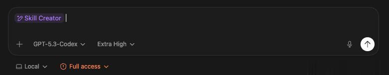 同时,Codex自带了skill Creator,也就是说,在codex上构建一个skills,体验跟扣子几乎一样,你只需要点击右上角的New Skill。