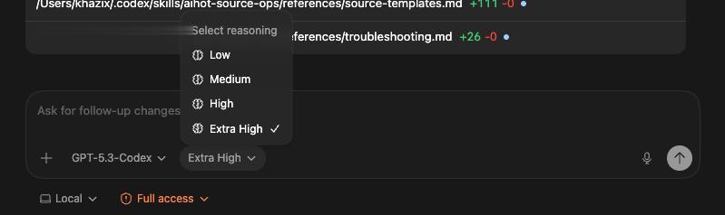 日常我更推荐你使用High,而一旦你觉得超出了日常的范畴,真的要干一些难活硬活大活了,就可以使用Extra High,它基本等同于5.2的xhigh。