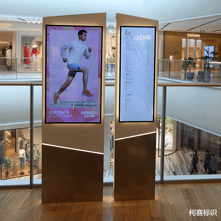 商业综合体智能标识标牌系统制作必须根据商业场所布局和人流走向,将其安装在显眼位置,确保用户在行走过程中能够轻松看到。