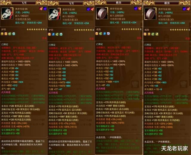 奇葩的面板必然有着奇葩的打造啊,宝石是一眼看不到规律,攻击宝石冰攻、玄攻击、内功宝石,防具四孔上的是6级蓝宝石。
