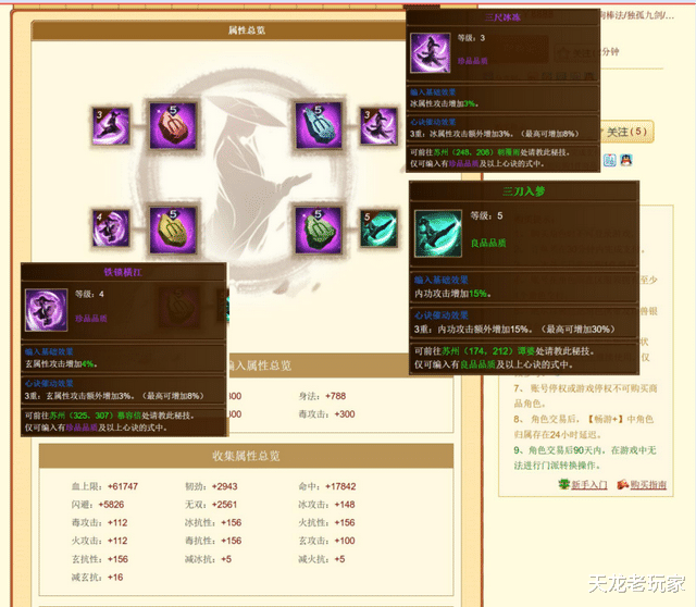 先看面板:血量84万,玄攻击10238,冰攻击7145,毒攻击2519,火攻击3077,内功攻击22万!