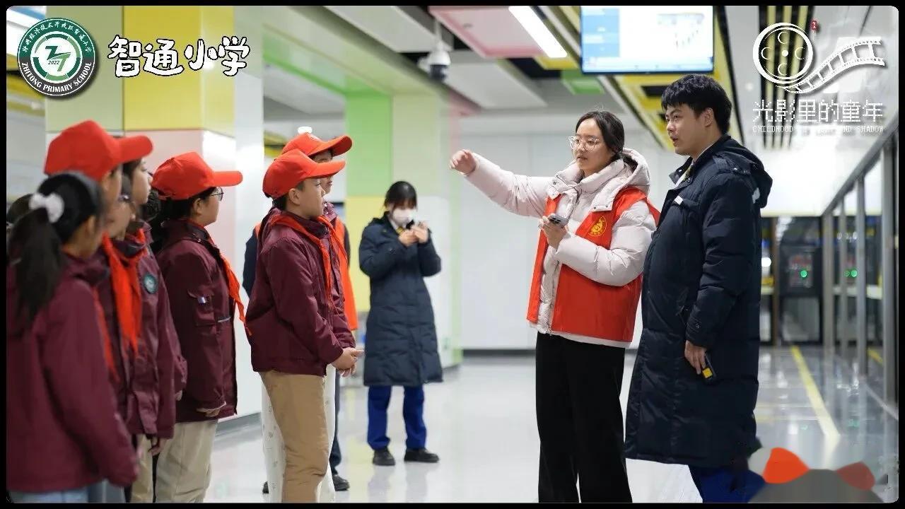 3月18日下午,16名三、四年级的学生在党员教师带领下走进鲁庙地铁站,开展沉浸式践学活动。在车站工作人员引导下,同学们参观了地铁控制室与设备区,深入了解地铁建设与安全运行知识。随后,小志愿者们分组参与“帮助乘客购票”“排队候车引导”等实战演练,以规范的站姿、清晰的手势和温暖的笑容,引导乘客文明出行,成为站台上一道亮丽的风景线。