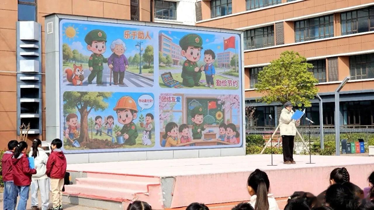 活动期间,学校从校内到校外,多维度推进主题教育。在庄严的升旗仪式上,学校少先队大队辅导员赵桦杨向全校师生发出“学雷锋”活动倡议,号召大家从身边小事做起,尊敬师长、团结同学、爱护环境、热心助人,争做新时代的美德少年。各班级、各中队随后扎实开展主题班会,通过故事分享、视频观看、小组讨论等形式,重温雷锋事迹,学习雷锋语录,引导学生将雷锋精神内化于心、外化于行。