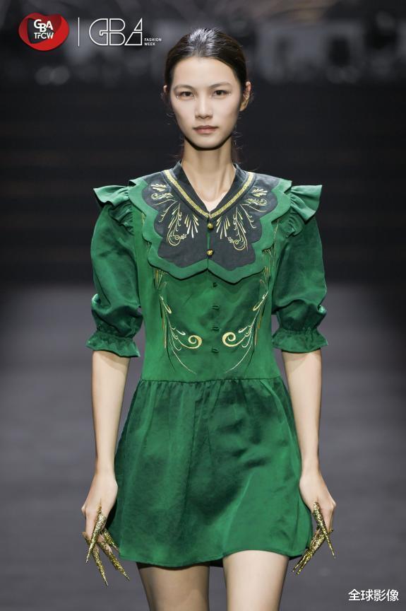 系列以中国古老的“五行哲学”(金、木、水、火、土)为创意内核,巧妙对应五种专属定制的香云纱面料色彩,并将三星堆文明中通天神树的神秘纹样,通过长达6个月、运用18种进口金线的匠心手绣融入华服设计。由粤港澳顶尖模特演绎的系列作品,淋漓尽致地展现了香云纱被誉为“东方黑金”的独特光泽、挺括肌理与流动质感,完美诠释了“非遗材质、年轻设计、宴会适配”的现代礼服新国风理念。