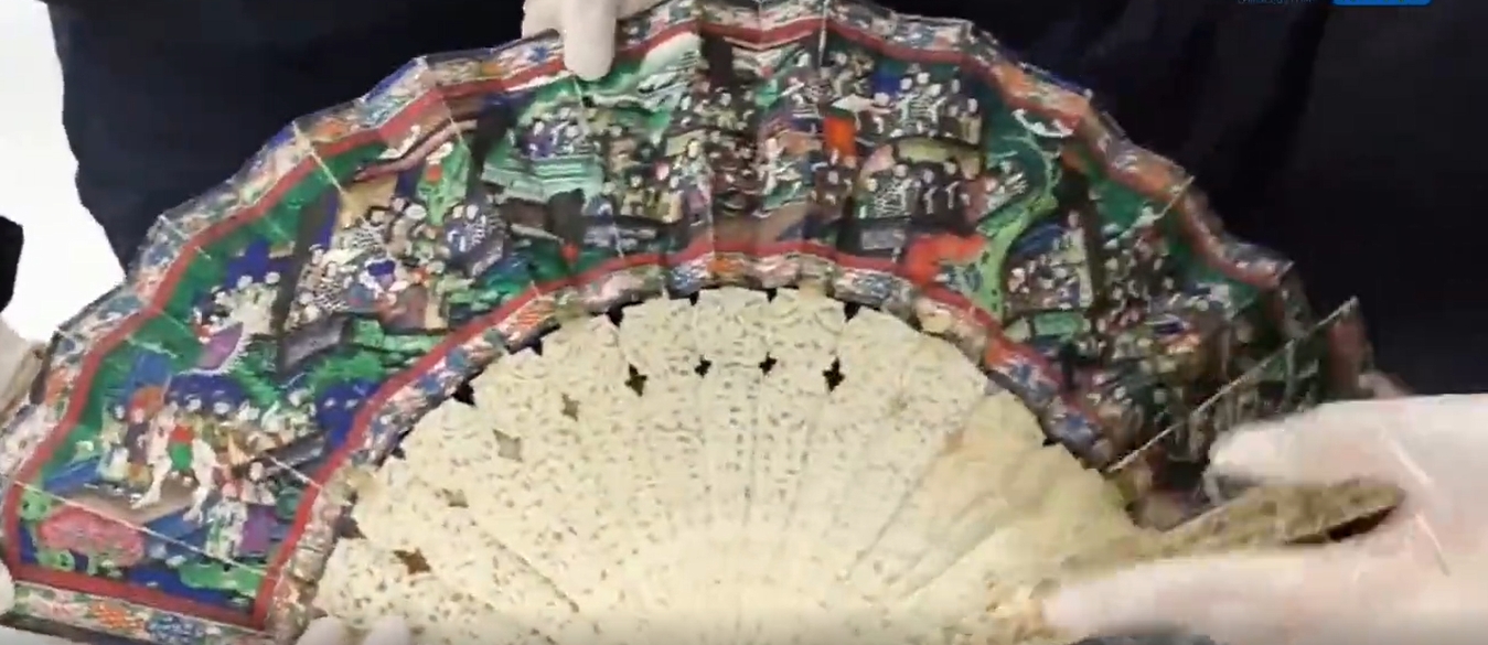 经专业机构鉴定,确认该折扇的扇骨均为哺乳纲长鼻目象科非洲象象牙制品。