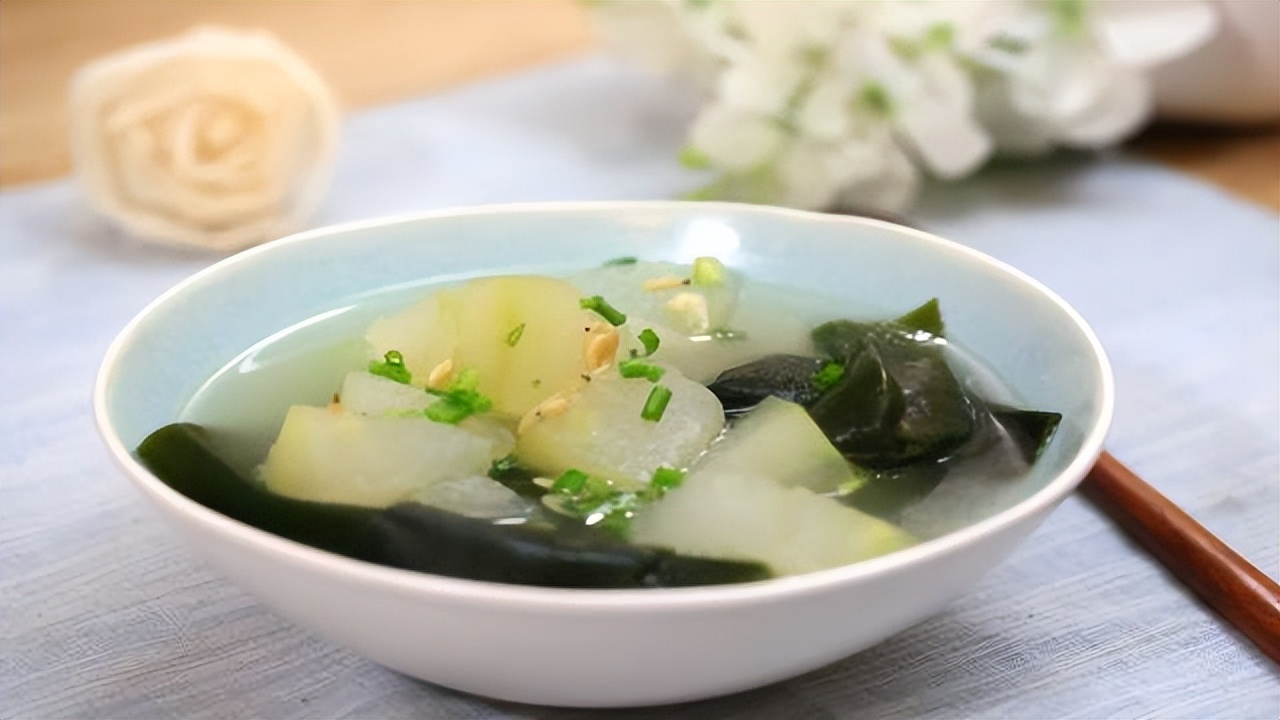 (4)冬瓜/海带:利尿消肿,海带富含钾、碘和可溶性膳食纤维。