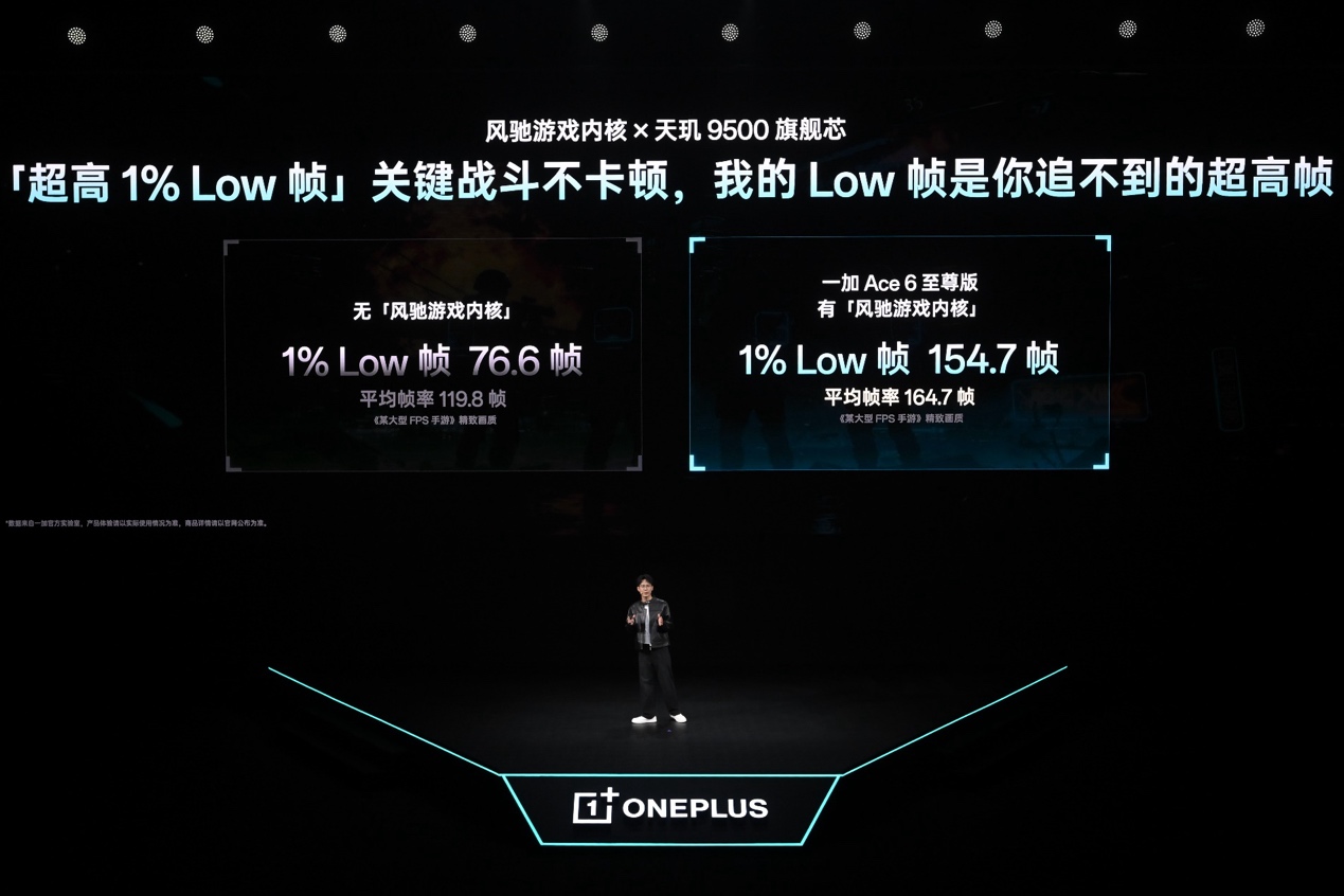 在联发科当代旗舰芯天玑 9500移动平台与独家自研芯片级游戏技术新一代「风驰游戏内核」加持下,一加 Ace 6 至尊版带来领先同档的165 无限满帧体验和1% Low帧表现。同时,一加拥有行业最丰富的165超高帧游戏生态,以及超高刷与顶级画质同开体验优势。