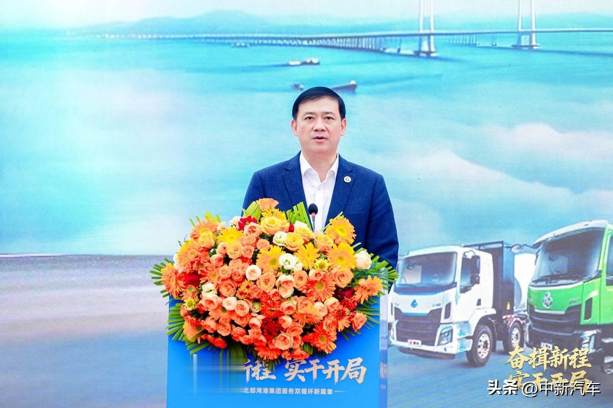 随后中国物流与采购联合会副会长杨国栋,广西北部湾国际港务集团有限公司党委书记、董事长胡华平,东风柳州汽车有限公司总经理林长波等领导共同登台,为活动启动揭幕,并分别发表讲话。杨国栋指出:“东风柳汽与北部湾港集团协同发力,是产业链深度融合的典范,更是服务国家战略、推动交通强国建设的生动实践”;胡华平表示,北部湾港集团将主动服务国家战略,持续优化“新三样”运输服务体系,为“广西制造”扬帆出海搭建便捷平台;林长波则强调:“左手是制造,右手是物流,中间连接的是千千万万的奋斗者”。讲话立足发展实际,既擘画了双方战略合作的发展蓝图,也为深化产港融合、服务双循环新发展格局凝聚了强大共识与奋进力量。