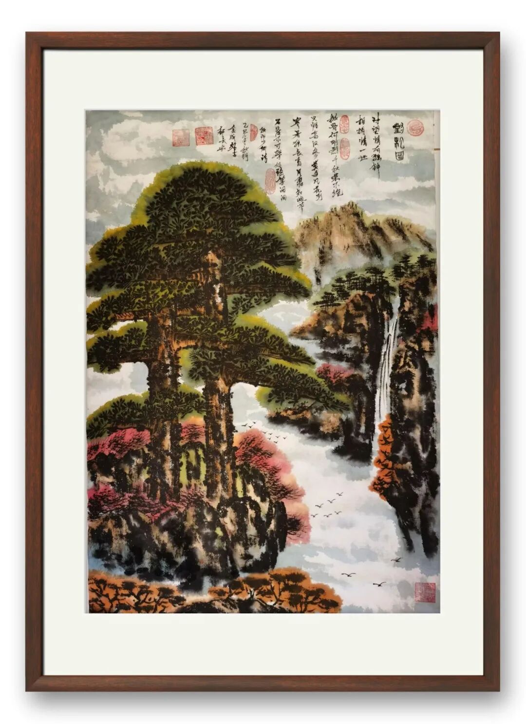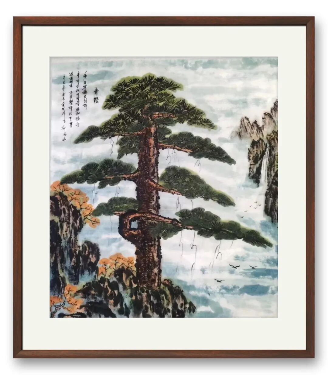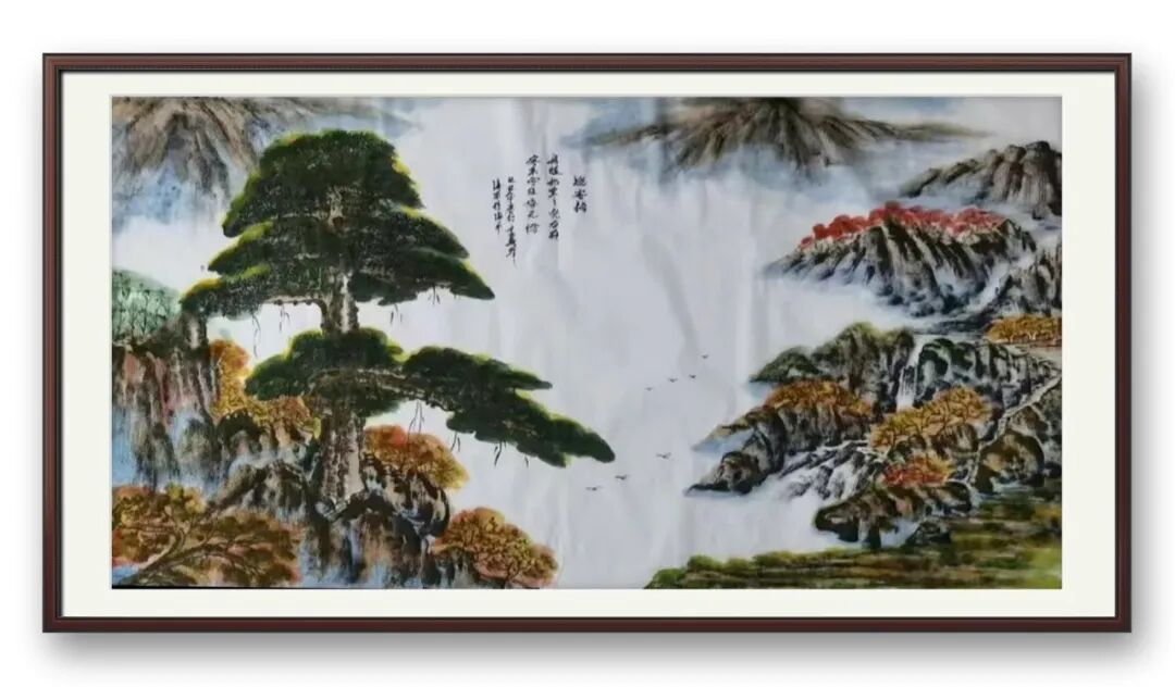 尤为精妙的是,他笔下的青松从不孤立存在,或立于悬崖峭壁之上,与云海相拥;或植于山涧溪畔,与林木共生。松的刚与云的柔、山的静与风的动,形成鲜明的对比与和谐的呼应,既凸显了青松“咬定青山不放松”的坚韧,又暗合了“君子和而不同”的处世之道。笔墨之外,更有精神内核的注入——松的苍劲,是岁月磨砺的坚韧;松的挺拔,是初心不改的坚守,这既是对传统文人精神的传承,亦是画家自身品格的写照。
