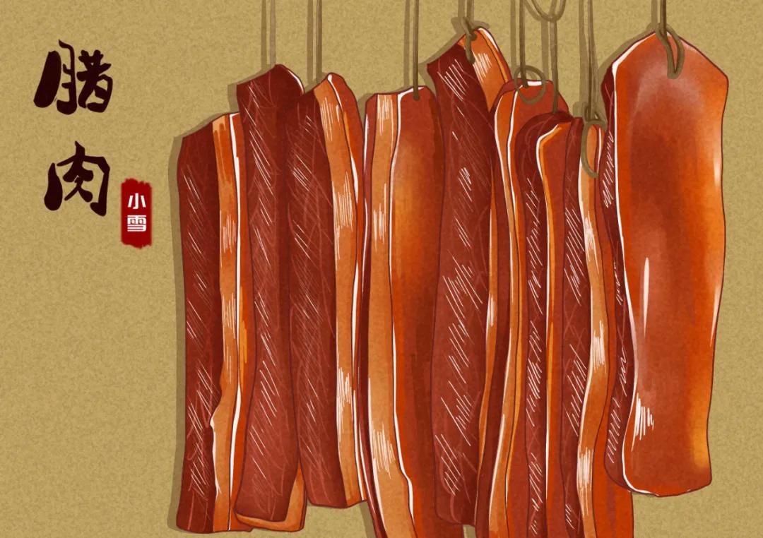 小雪时节气温急剧下降,天气变得干燥,是加工腊肉的好时候。一些农家开始动手做香肠、腊肉,把多余的肉类用传统方法储备起来,等到春节时正好享受美食。很多地方都有冬季吃腊肉的习俗,尤其是南方城市,更是对腊味情有独钟。