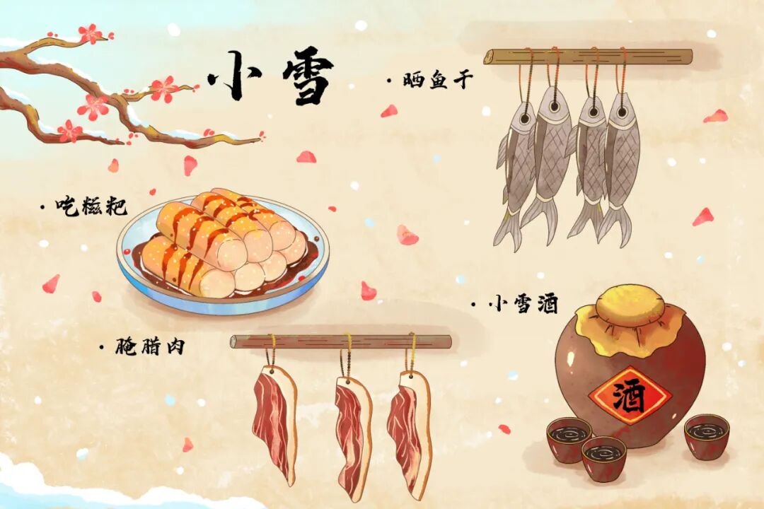 小雪的相关习俗大多与吃有关。这也好理解,因为马上就要进入食物匮乏的冬季,因此必须做好越冬准备。