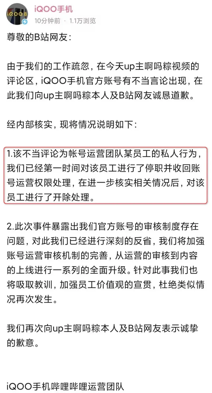 网友从vivo直播间置顶的不当言论,扒到vivo和争议博主@逍遥散人的商单合作,再到子公司iQOO员工曾在B站发布过不当言论,也被再次拖出来挨打。