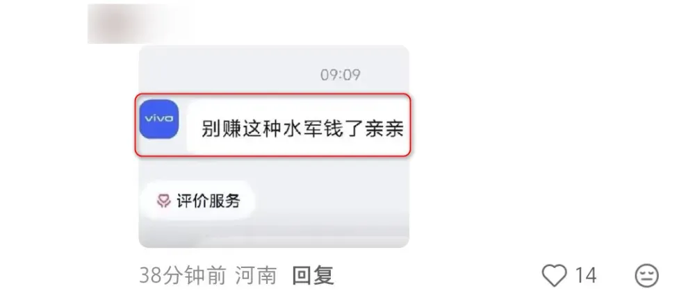 然后,客服一句“别赚这种水军钱了亲亲”,堪称为火上浇油……