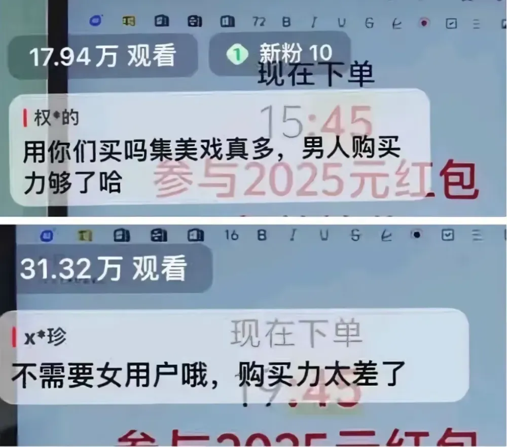 “用你们买吗?集美们戏真多,男人购买力够了哈。”