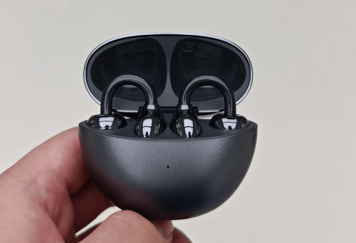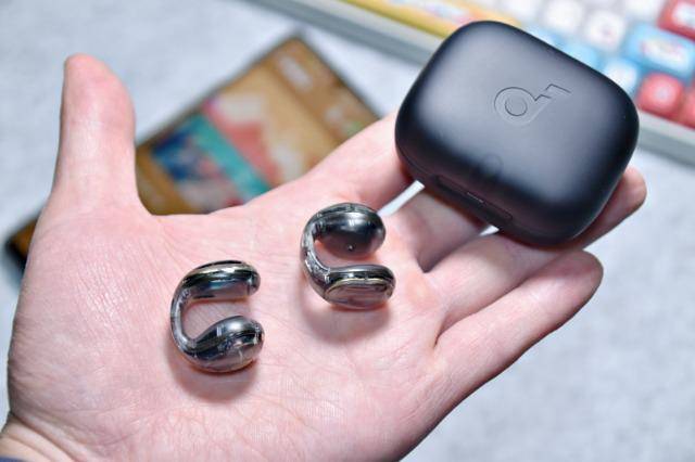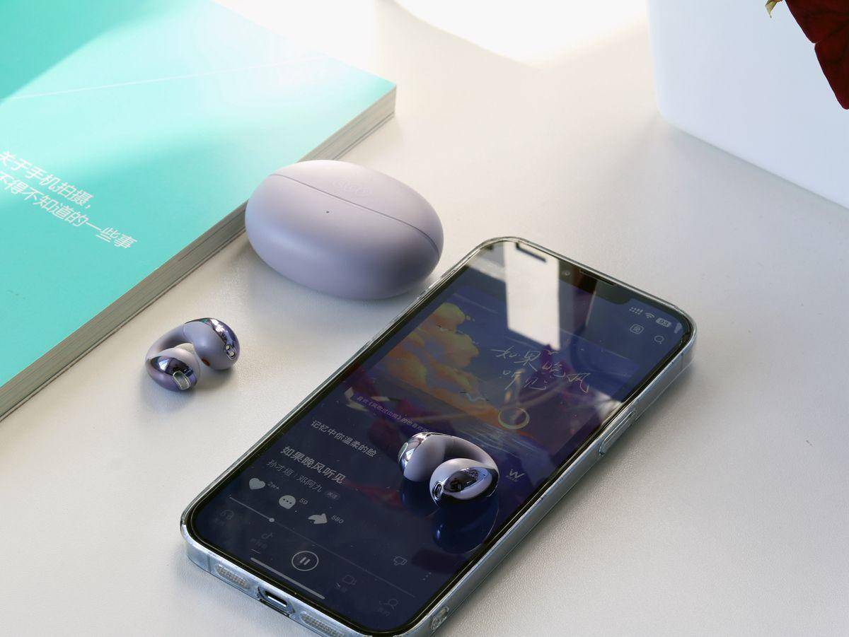 佩戴体验:采用开放式耳夹结构,不需要塞进耳道,只需夹在耳廓上即可,单只约5.6g,佩戴轻盈无负担。耳夹基于全球超1万名用户的耳廓数据进行优化设计,能自然贴合不同耳型,即便长时间戴也不压耳、不硌耳。对戴眼镜的人也非常友好,与镜腿互不干扰,走路、跑步等日常活动时稳定性很好,不容易晃动或掉落。