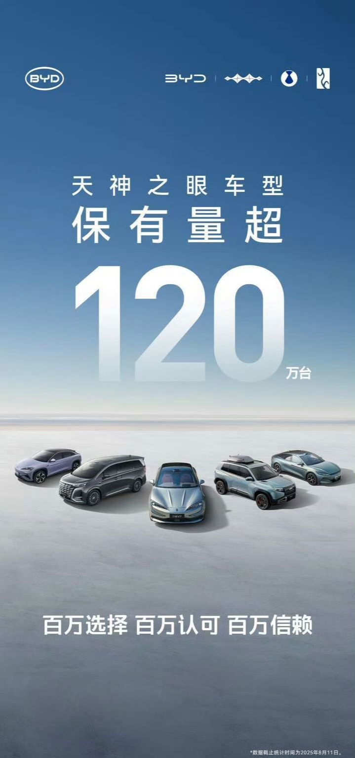 。发布仅半年,搭载智能辅助驾驶系统车型销量便超120万台,截至8月11日,搭载天神之眼辅助驾驶系统的车型累计销量突破120万辆,成为中国市场装车量最大的智能辅助驾驶系统,赢得消费者广泛认可,2025年买车、选智驾,比亚迪不容错过。