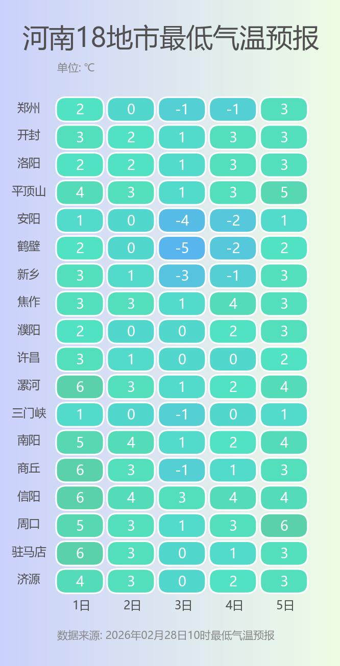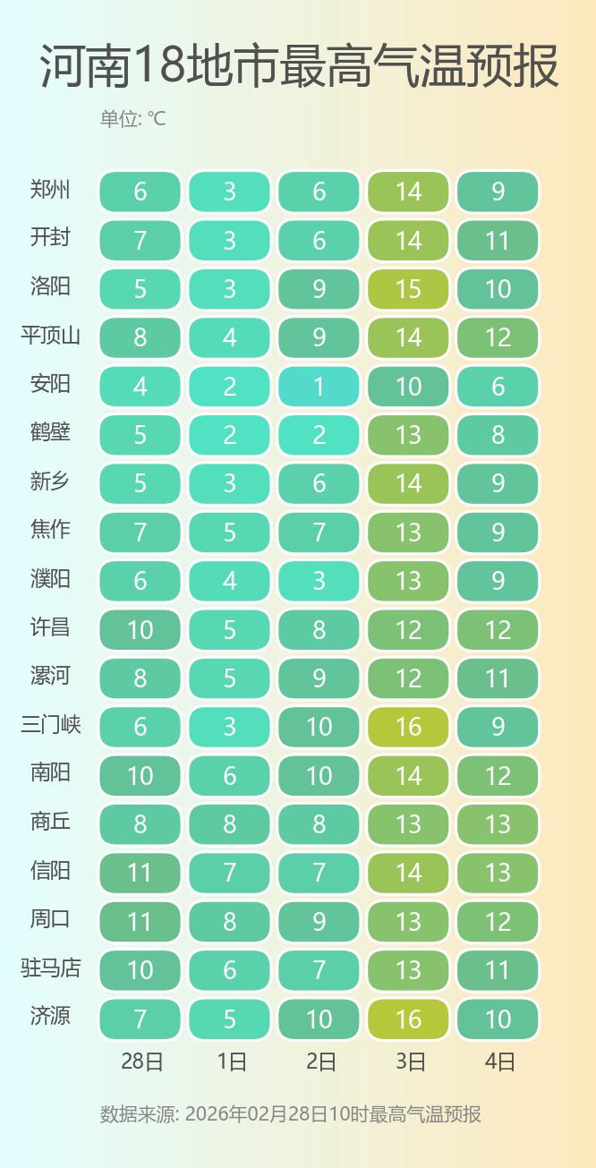 预报来源:河南省气象台2026年2月28日12时预报