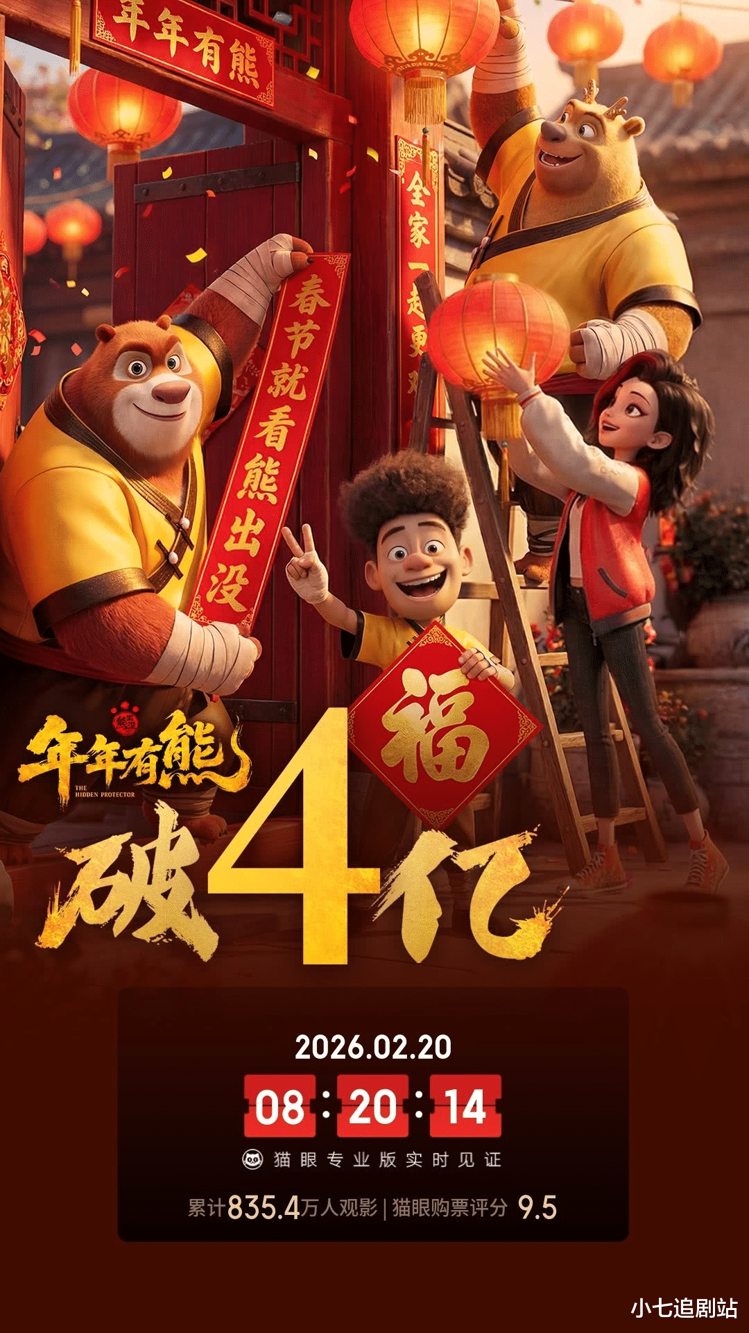 11年来,《熊出没》系列电影累计票房已超85.47亿,在2026年上映的《熊出没·年年有熊》上映2天23小时,就破4亿票房。